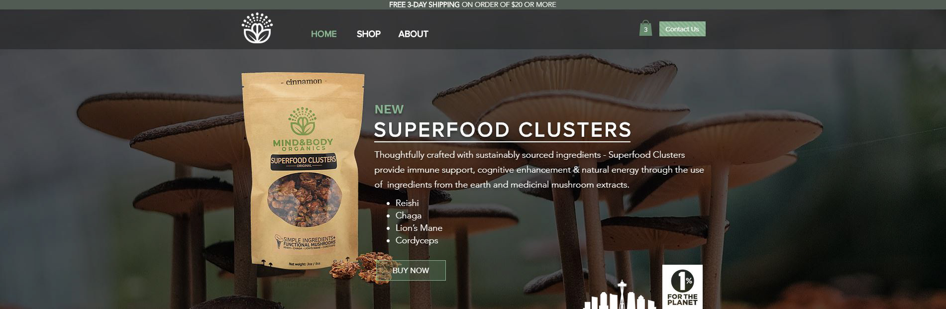 As the Creative Director for Mind&Body Organics, I was tasked with creating a brand image that reflected physical and mental health, sustainability, and overall deliciousness. As well as promoting the products key ingredients: functional mushrooms.