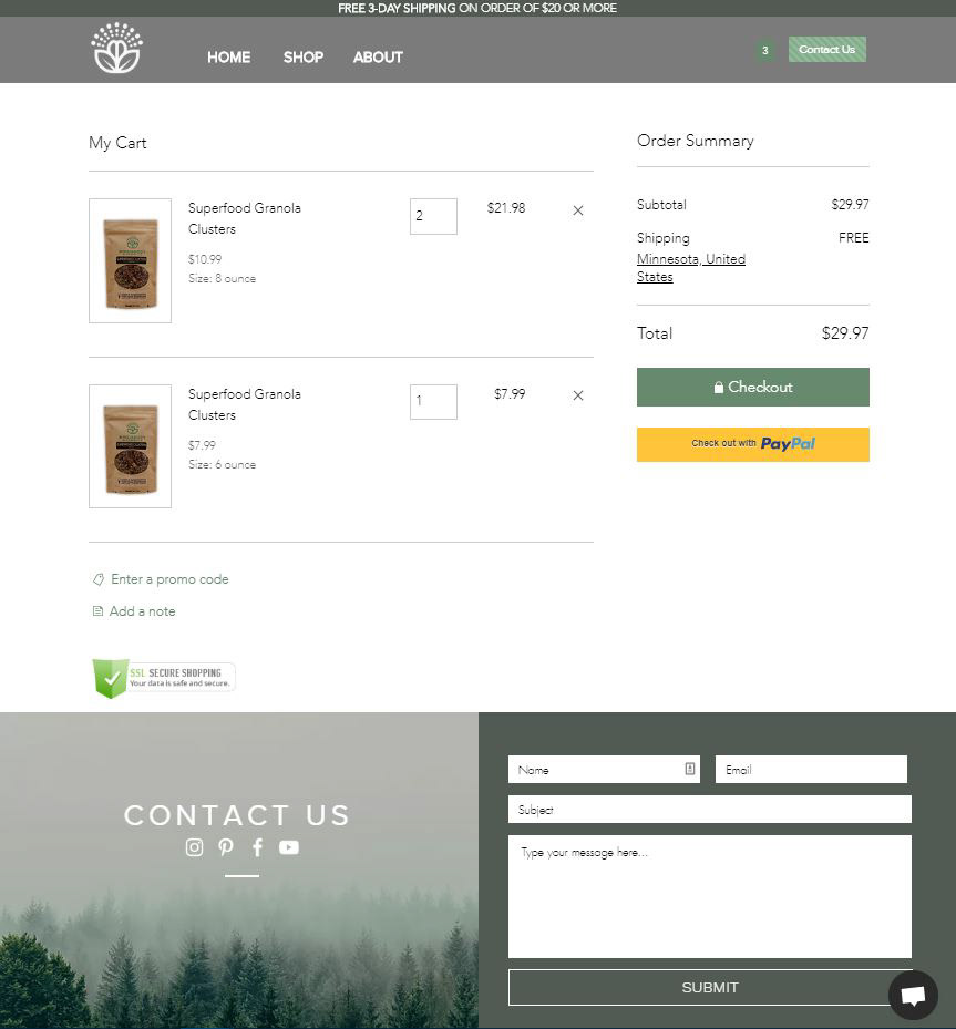On the shop page, visitors can see the product information, ingredients list with benefits, nutrition information, give-back campaign (COVID-19 Seattle research fund), customer feedback, and images linked to recipes posted on the blog